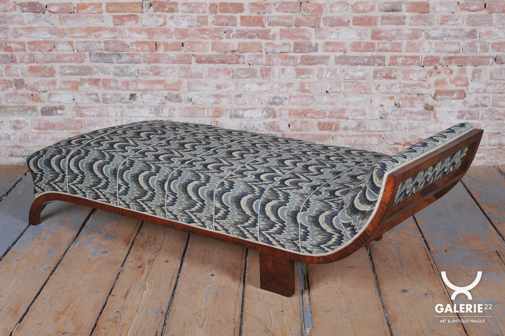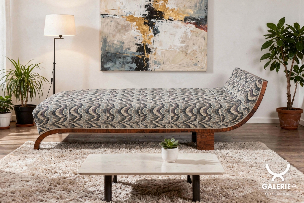 Thanks to precise restoration and the use of premium materials, this sofa is ready to become a dominant centerpiece in both modern and historically themed interiors. It represents a rare fusion of interwar Czechoslovak tradition and top-tier French textile design, making it a highly attractive piece for both collectors and daily use.