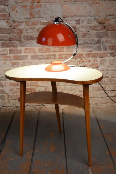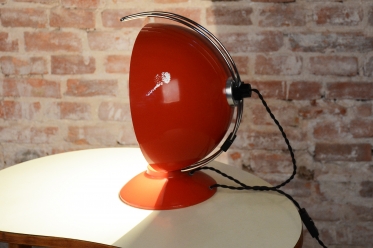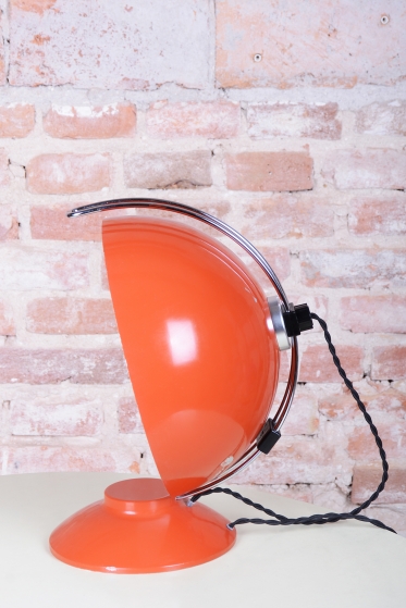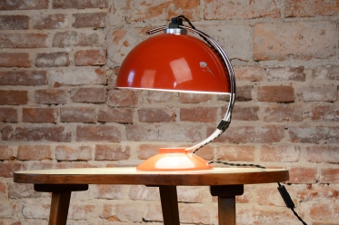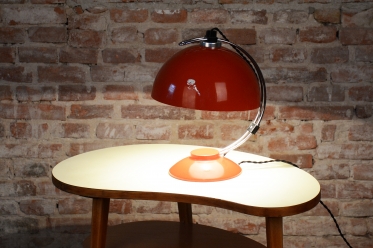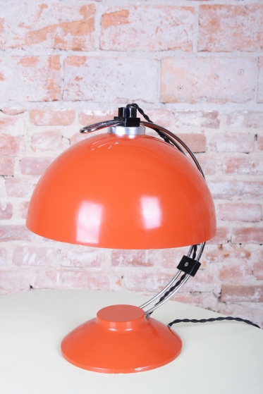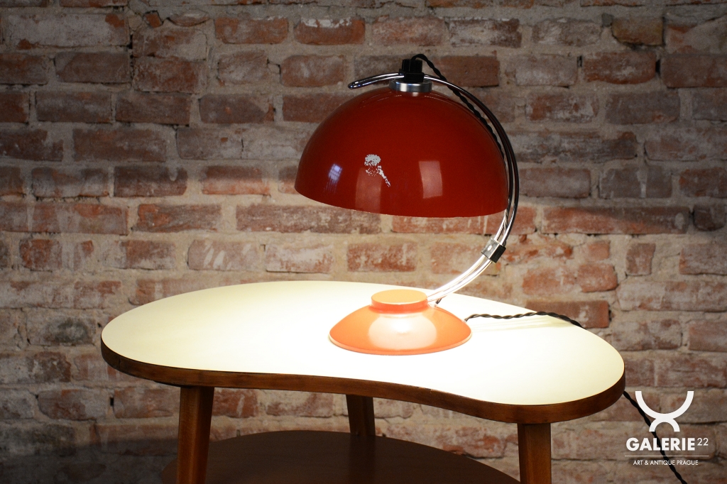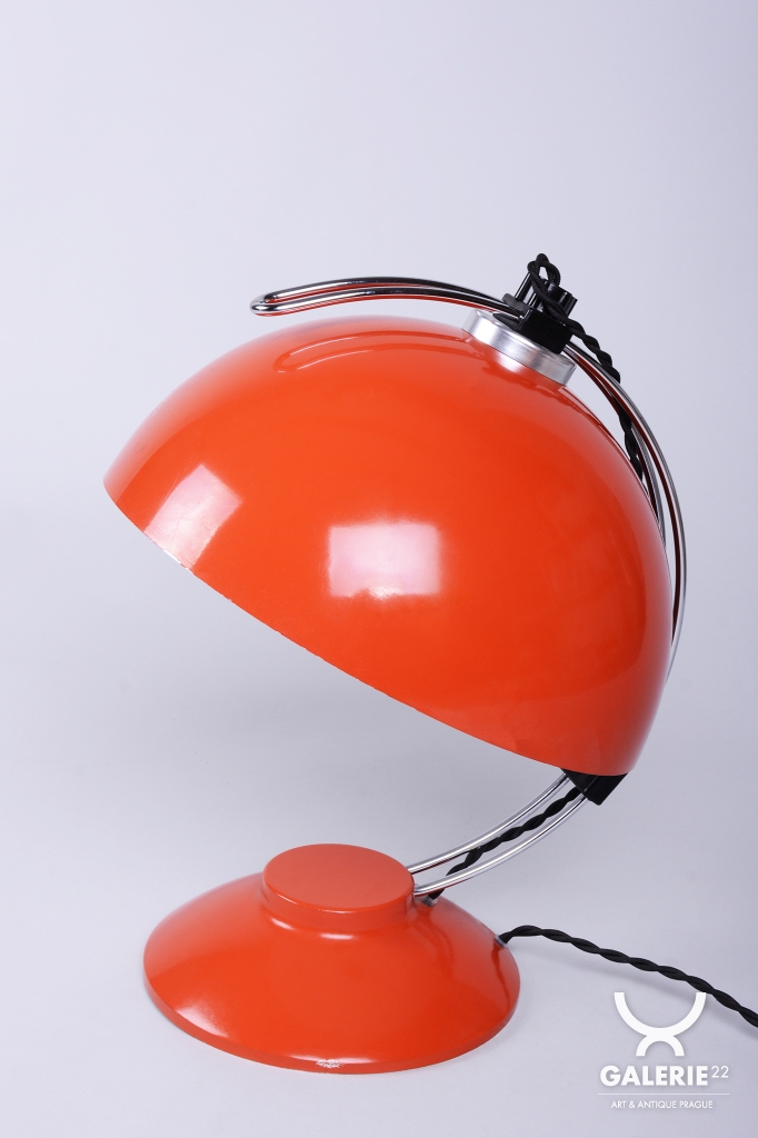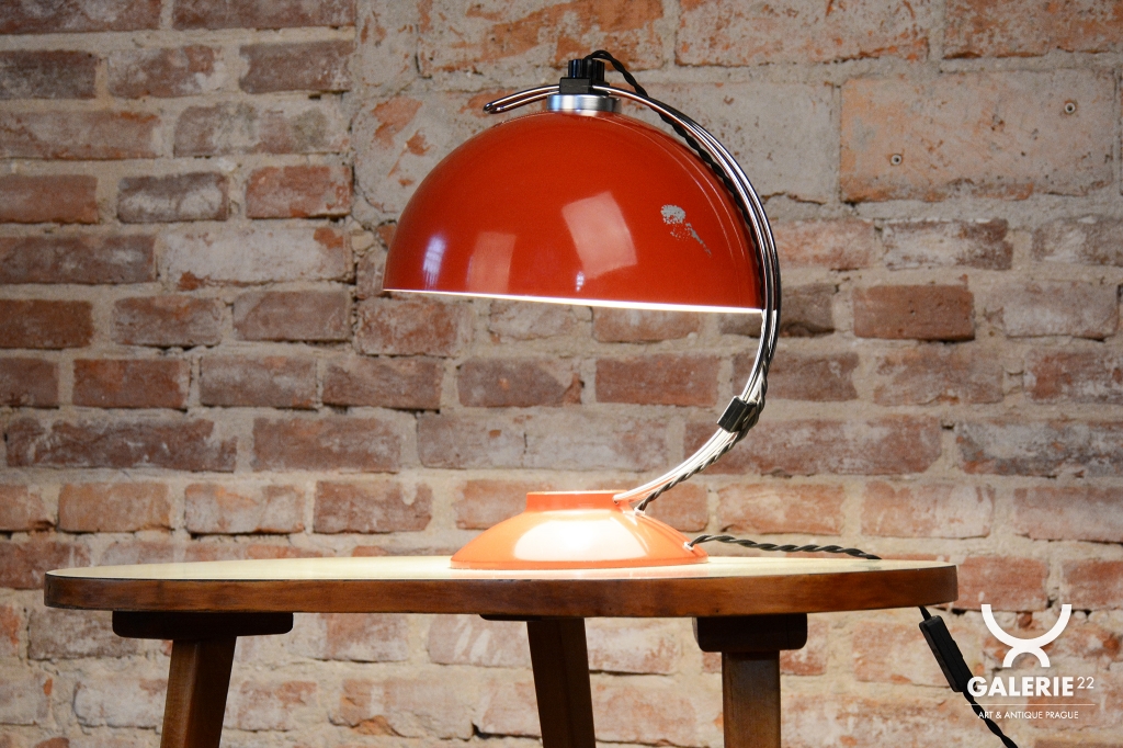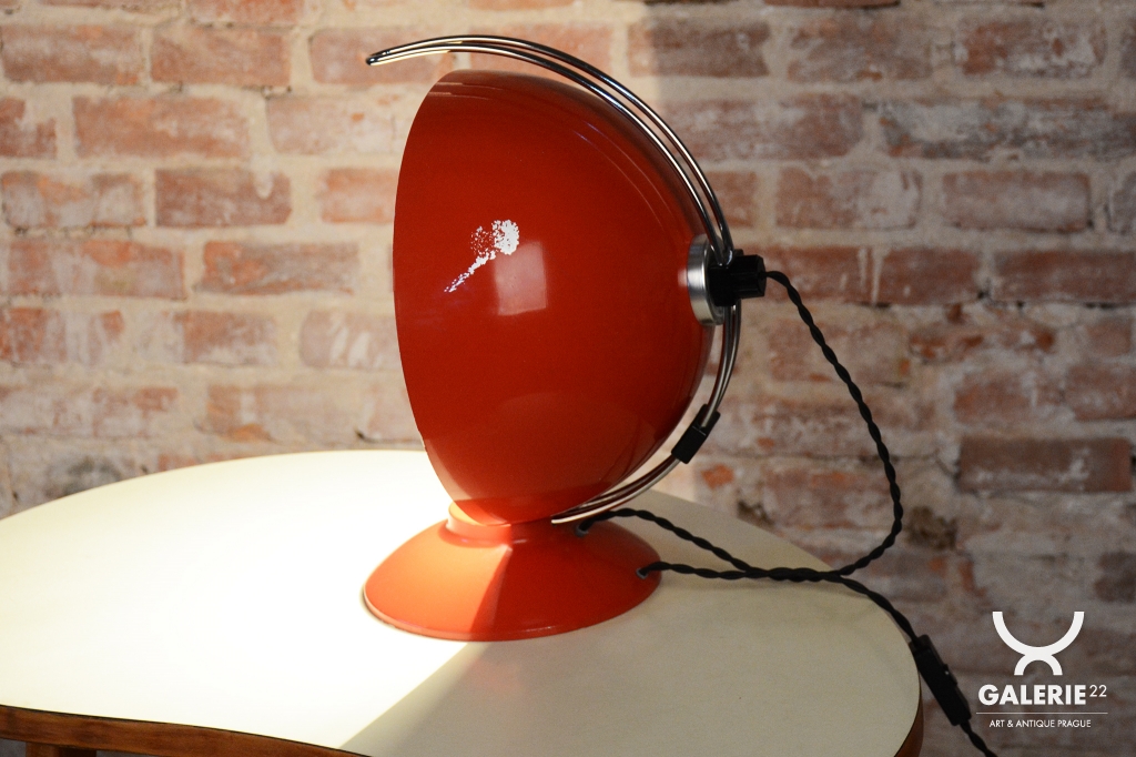 The item remains in the original, very well-preserved condition. Collectors value such a state in lighting from this era. The construction of chrome-plated and lacquered steel retains its integrity and visual appeal. The lamp underwent a revision of the electrical wiring. It is fully functional and ready for immediate use in a modern workspace or as a stylish centerpiece in a living room.