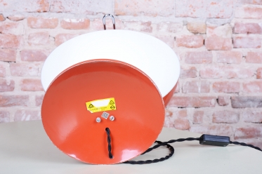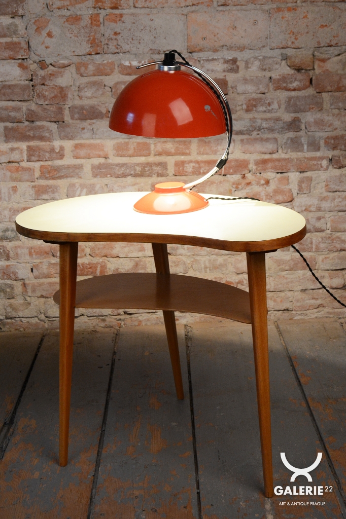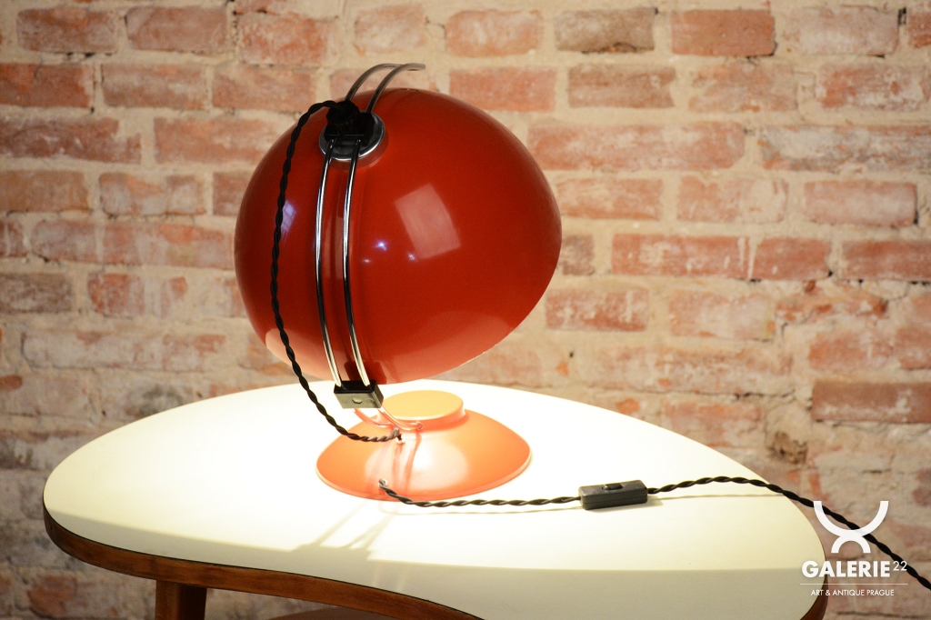 This table lamp is a bold representative of Czechoslovak design from the 1970s, a period known as Mid-Century. The lamp embodies the aesthetic of late modernism, where geometric rigor meets a playful mix of materials and colors. It is an ideal accessory for fans of retro style who look for an authentic piece with a touch of industrial elegance.