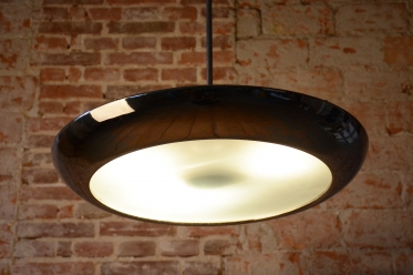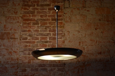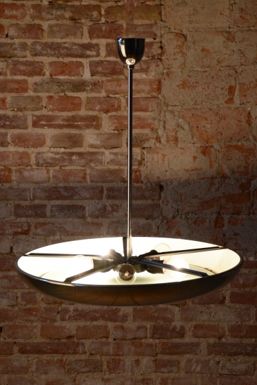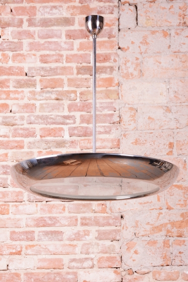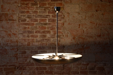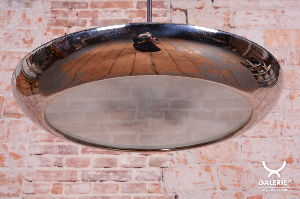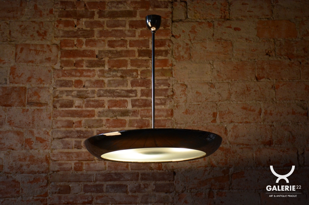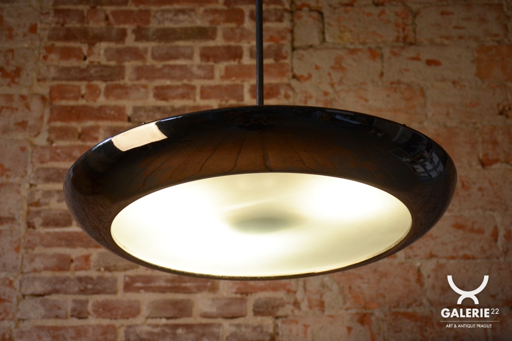 This iconic pendant, familiarly nicknamed UFO, is one of the most prominent lighting fixtures of Czechoslovak functionalism and Bauhaus design from the 1930s. The renowned architect and designer Josef Hurka created this timeless design. His work for the Napako company defined the modern look of interwar lighting. The pendant stands out for its aerodynamic form and purity of design, which remains very modern even after almost a hundred years.